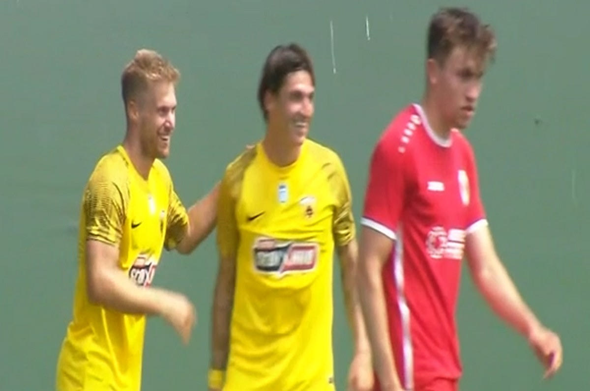 Η ΑΕΚ πήρε το προβάδισμα στη φιλική αναμέτρηση με το τέρμα του Φαν Βέερτ στο 56ο λεπτό. Ο Άμραμπατ συνέκλινε μέσα στην περιοχή και έκανε το γύρισμα στον Τσούμπερ, αυτός έκανε το γύρισμα στον Ολλανδό φορ, ο οποίος με ένα απλό άγγιγμα έστειλε την μπάλα στα δίχτυα.