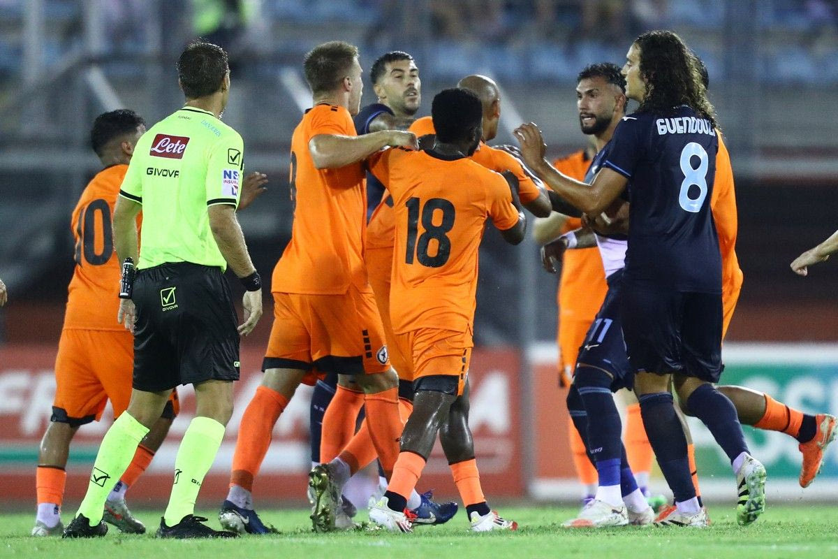Χαμός στο Λάτσιο – Ατρόμητος, που διακόπηκε μετά από σκληρά μαρκαρίσματα, αψιμαχίες, κόκκινες και ξύλο στη φυσούνα.