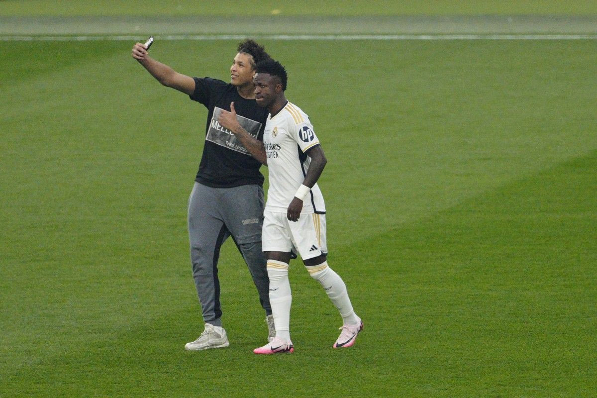 Ένας από τους οπαδούς που μπήκαν στον αγωνιστικό χώρο, έβγαλε selfie με τον Βινίσιους. Ένας άλλος πάλι μπήκε στον αγωνιστικό χώρο και μιμήθηκε τον Ρονάλντο.