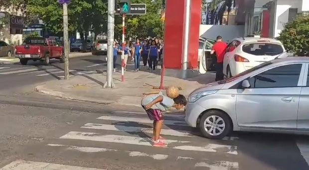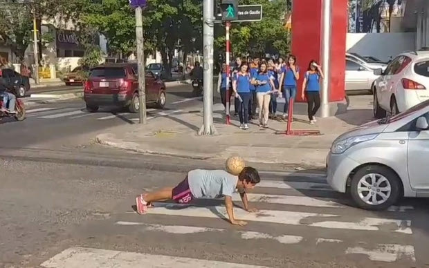 Έστω και για λίγα δευτερόλεπτα (όσο διαρκεί το φανάρι), έστω και όχι σε χλοοτάπητα (αλλά στην άσφαλτο) προσπαθούσε να υποδυθεί τον Μαραντόνα, τον Πελέ, τον Μέσι.