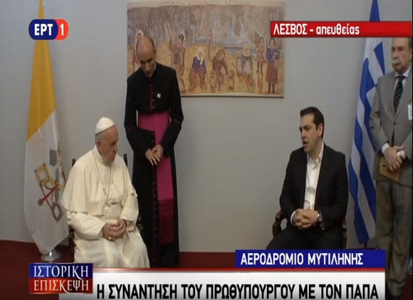 Όσοι είδαν πλάνα από την ιστορική επίσκεψη του Πάπα Φραγκίσκου στην Λέσβο, αναγνώρισαν στον μεταφραστή δίπλα στον Τσίπρα, τον Βασίλη Τριανταφύλλου που βρέθηκε στο πλάι του Στραματσόνι στο Καραϊσκάκης.