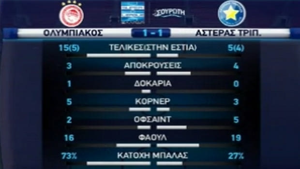 Η στατιστική απεικόνιση του πρώτου ημιχρόνου: