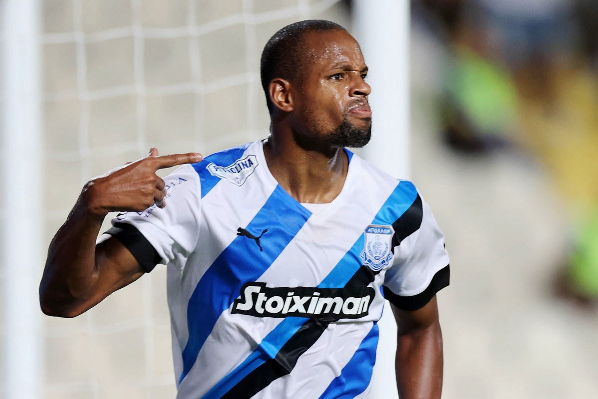 Ο Ράνχελο Ζάνγκα του Απόλλωνα Λεμεσού πανηγυρίζει γκολ που σημείωσε κόντρα στον Ολυμπιακό για τα playoffs του Europa League 2022-2023 στο ΓΣΠ, Λευκωσία | Πέμπτη 18 Αυγούστου 2022
