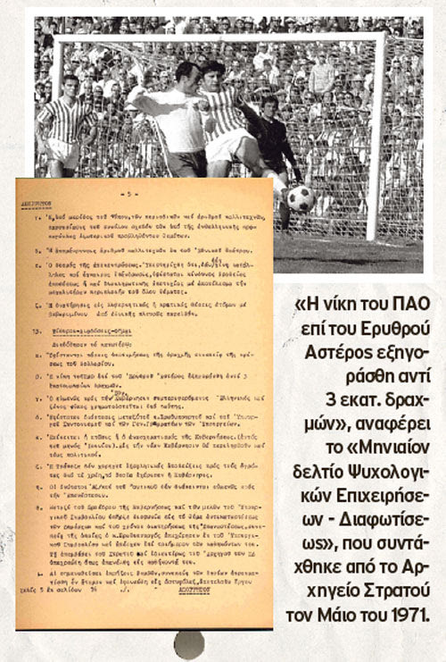 β. Η νίκη του ΠΑΟ επί του Ερυθρού Αστέρος εξηγοράσθη αντί 3 εκατ. δραχμών.