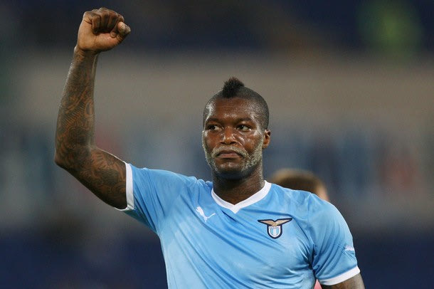 ROME, ITALY - AUGUST 18: Djibril Cisse of SS Lazio celebrates after scoring his second goal during the UEFA Europa League playoff first leg match between S.S. Lazio and FK Rabotnicki at Olimpico stadium on August 18, 2011 in Rome, Italy. (Photo by Paolo Bruno/Getty Images)