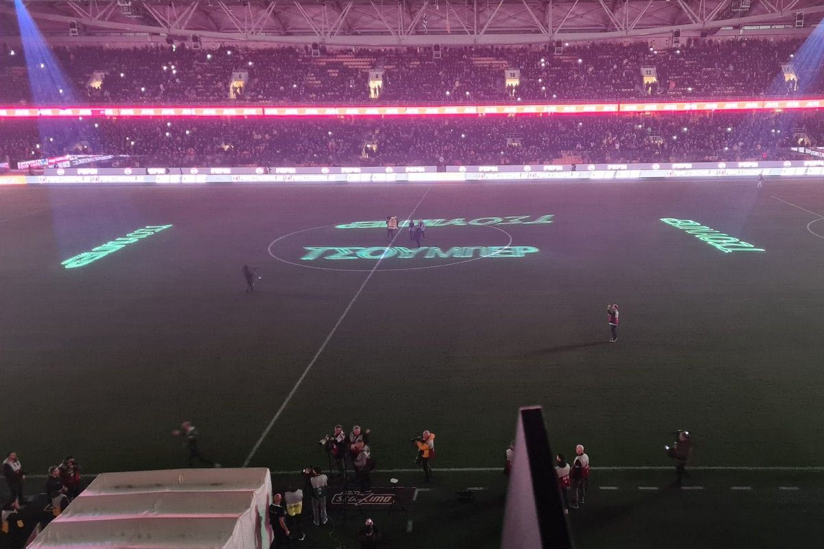 Την ίδια ώρα έπαιζε video στα μάτριξ του με γκολ του Τσούμπερ με την κιτρινόμαυρη φανέλα και ήταν σε λειτουργία τα φωτορυθμικά, με τον Τσούμπερ να ευχαριστεί τους φίλους της ΑΕΚ μέσω μικροφώνου και τον ιδιοκτήτη της ΑΕΚ να παίρνει το λόγο και να αναφέρει μεταξύ άλλων: