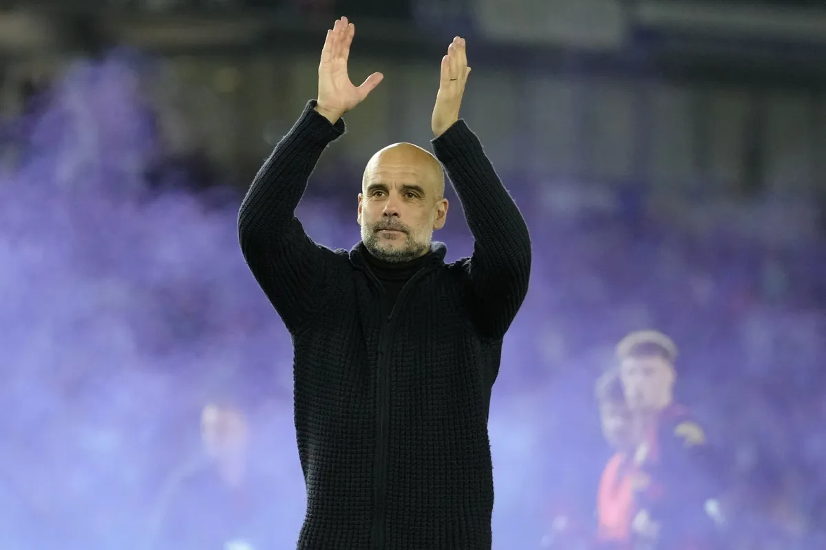 Ο Πεπ Γκουαρδιόλα χειροκροτεί μετά το 1-1 της Σίτι με την Μπράιτον © 2023 Kirsty Wigglesworth / AP IMAGES