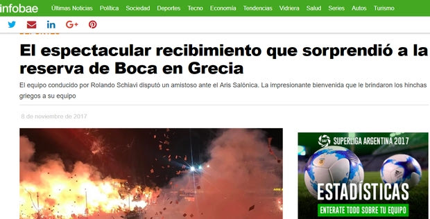 “Η φανταστική υποδοχή που εξέπληξε τις ρεζέρβες της Μπόκα στην Ελλάδα” είναι ο τίτλος της “Infobae”, η οποία σημειώνει ότι οι νεαροί ποδοσφαιριστές της ομάδας του Μπουένος Άιρες έζησαν μια φανταστική διεθνή εμπειρία.