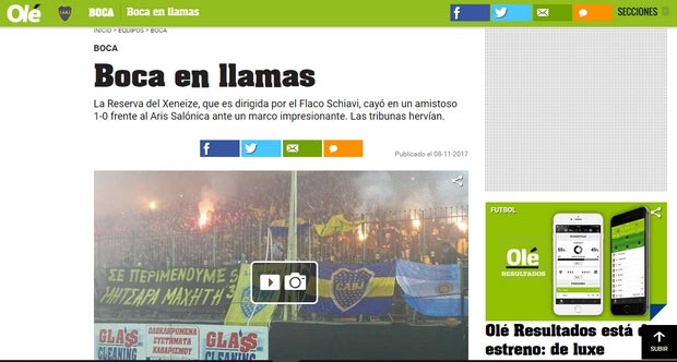 Την ίδια αποθέωση γνωρίζει ο κόσμος του Άρη κι από τη μεγαλύτερη εφημερίδα της Αργεντινής, “Ole”. “H Μπόκα στις φλόγες” είναι ο τίτλος, ενώ υπογραμμίζεται ότι η εξέδρα “έβραζε”.
