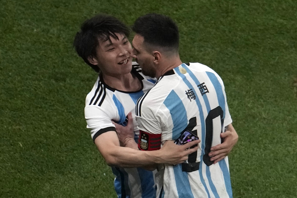 Εισβολέας αγκαλιάζει τον Λιονέλ Μέσι της Αργεντινής στη φιλική αναμέτρηση με την Αυστραλία στο "Γουόρκερς Στέιντιουμ", Πεκίνο | Πέμπτη 15 Ιουνίου 2023