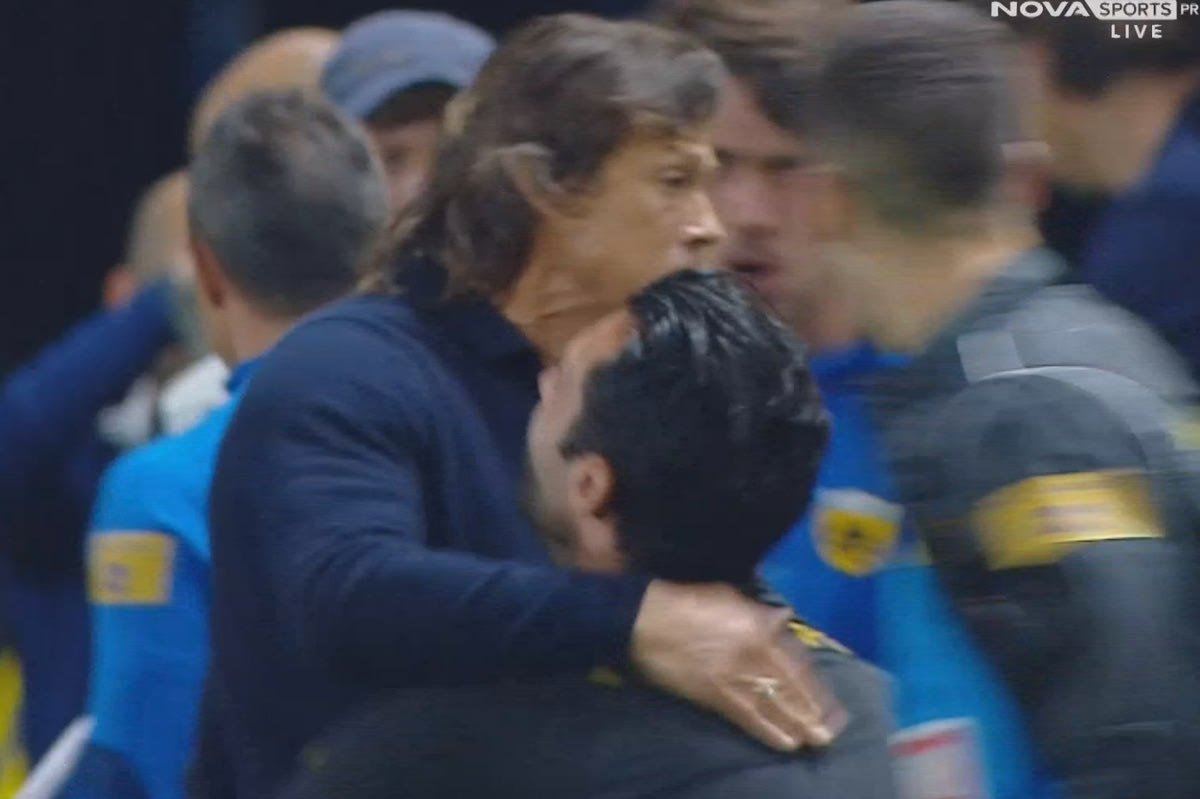 Μάλιστα, αγκαλιάστηκε με τον Γιώργο Τζαβέλλα, ο οποίος βρισκόταν δίπλα του εκείνη τη στιγμή.