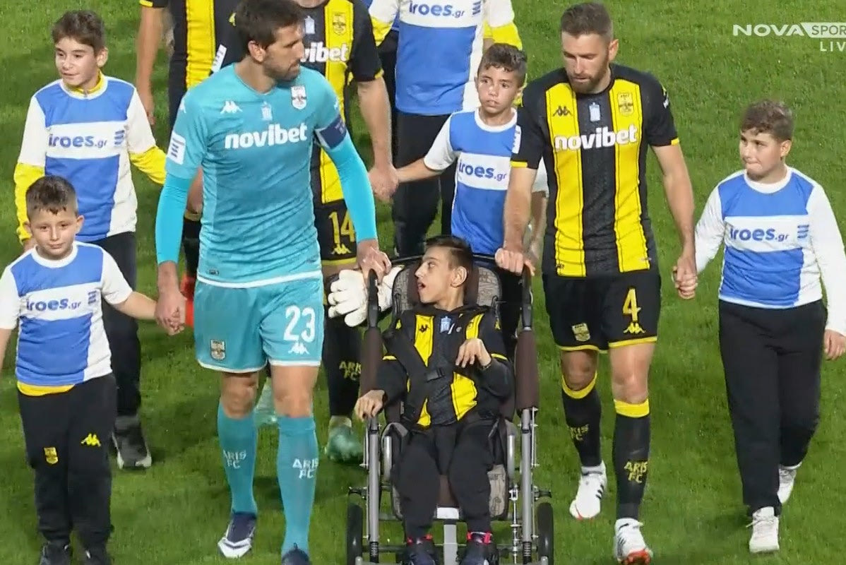 Όμορφες εικόνες στο Άρης – Ατρόμητος, με τον μικρό Γιάννη, τον φίλο του Άρη να είναι ένα από τα παιδάκια που μπήκαν στον αγωνιστικό χώρο μαζί με τους παίκτες του Άκη Μάντζιου. Ο Κουέστα και ο Φαμπιάνο ήταν αυτοί που τον συνόδευσαν.