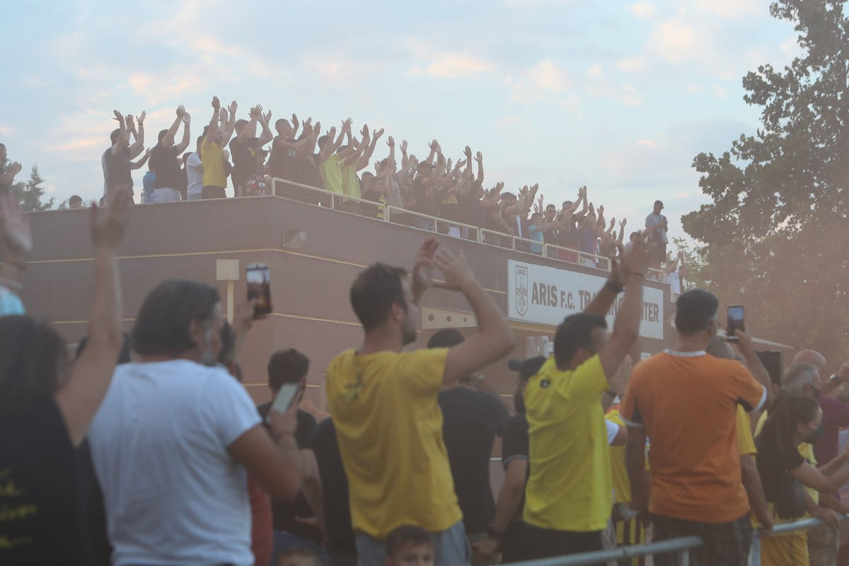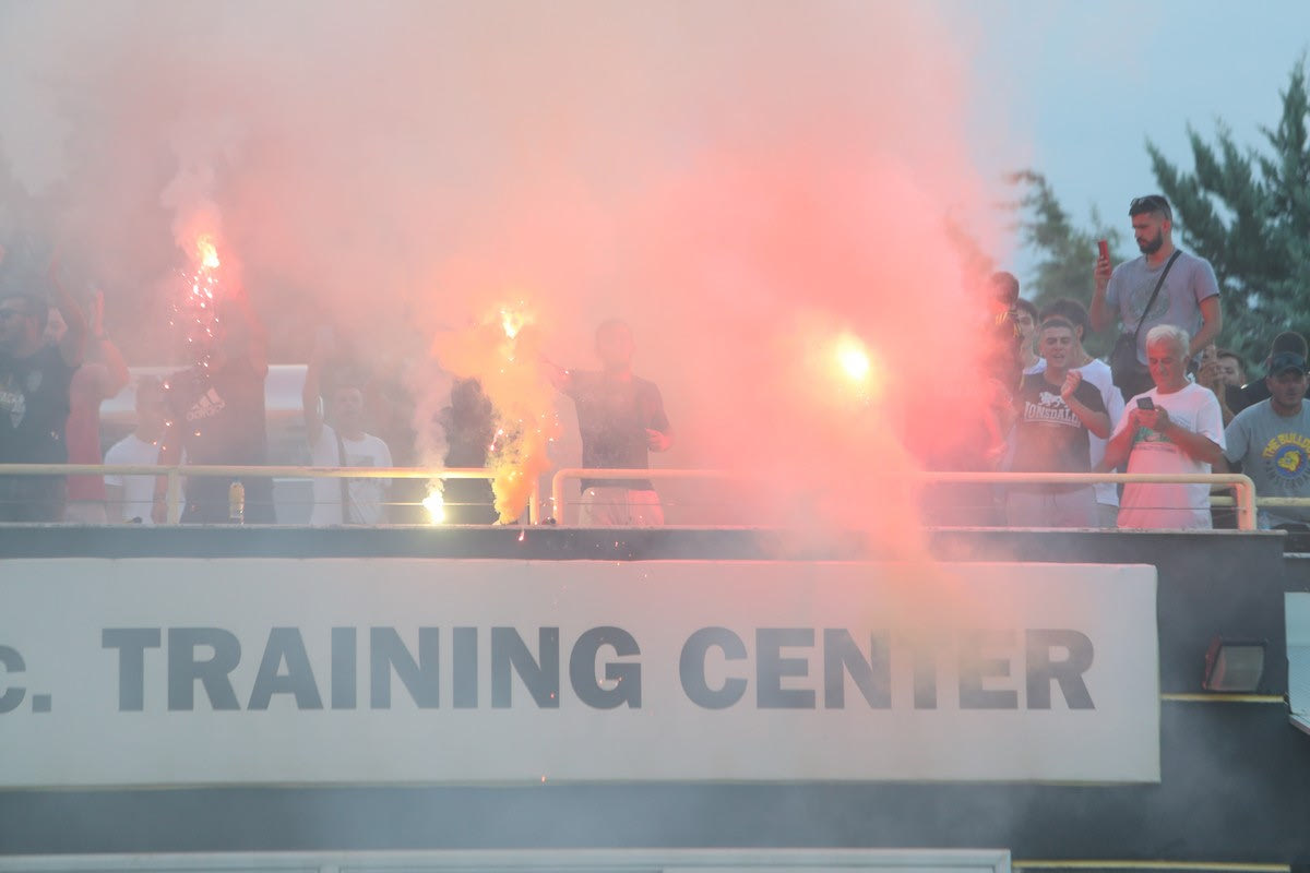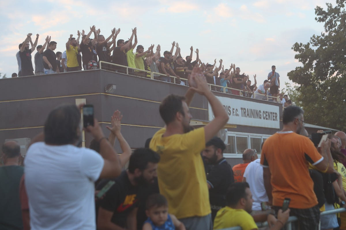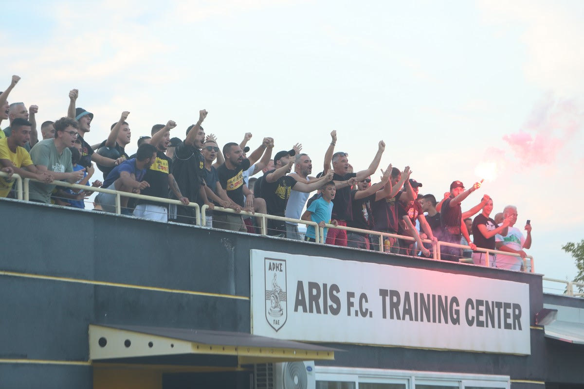Εκατοντάδες φίλοι του Άρη βρέθηκαν την Τετάρτη (10/8) στο προπονητικό κέντρο του Άρη και "ντόπαραν" ψυχολογικά την ομάδα ενόψει του αγώνα της Πέμπτης με την Μακάμπι και το δύσκολο έργο της ανατροπής.