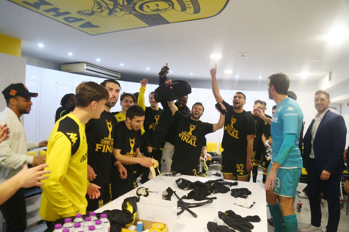 Οι παίκτες του Άρη μετέφεραν τους πανηγυρισμούς για την πρόκριση στους τελικούς του Κυπέλλου Ελλάδας Betsson και στα αποδυτήρια.