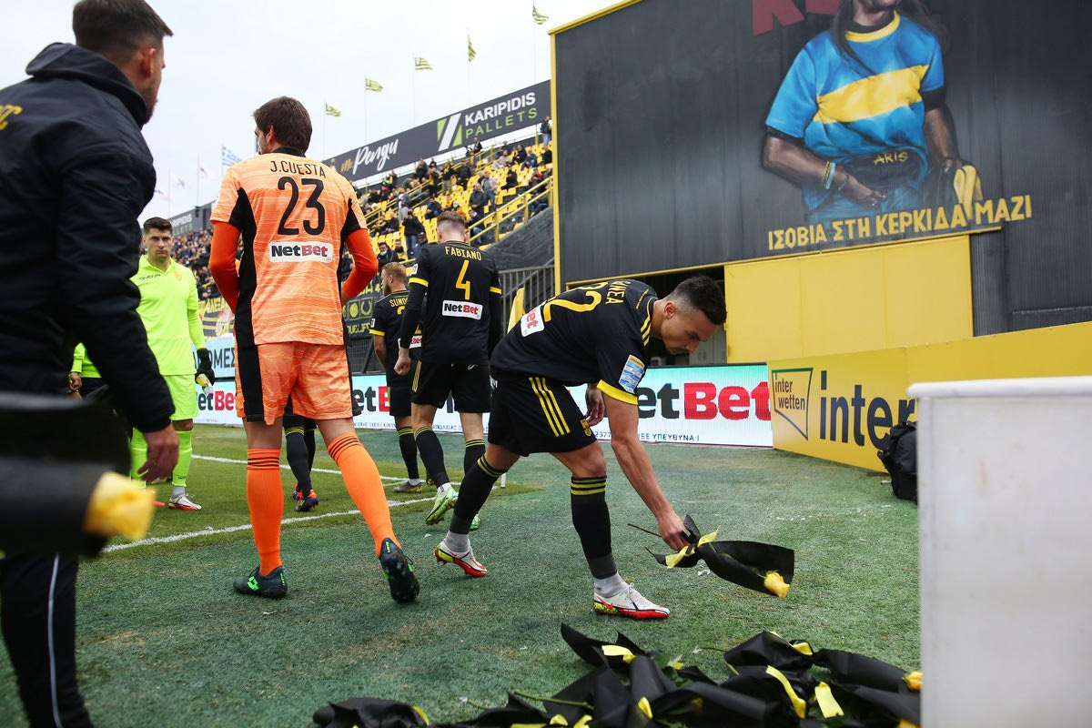 Άρης: Η κατάθεση λουλουδιών των παικτών των κίτρινων και του Παναιτωλικού στη μνήμη του Νίκου Τσουμάνη