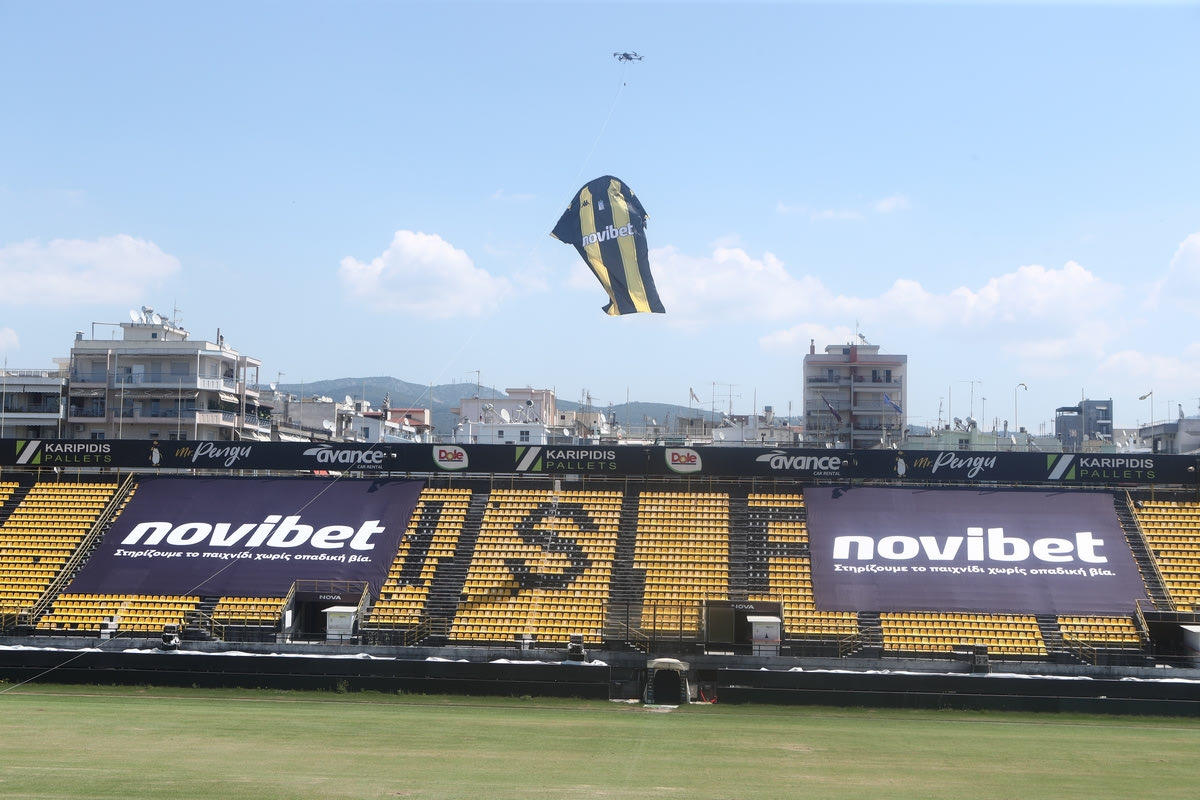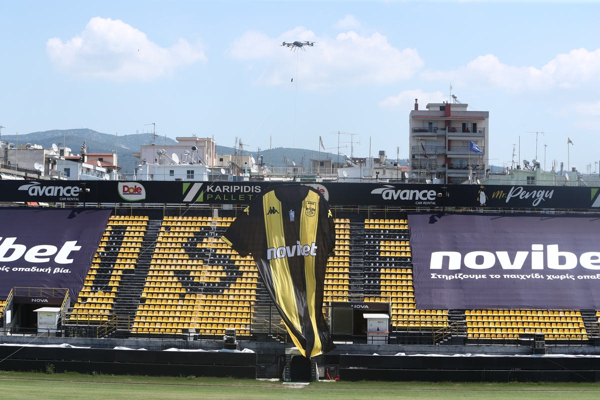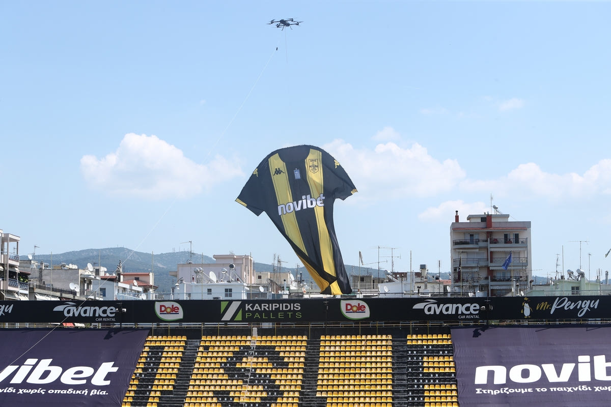 Άρης: Η νέα φανέλα των κίτρινων πέταξε με drone πάνω από το Κλεάνθης Βικελίδης