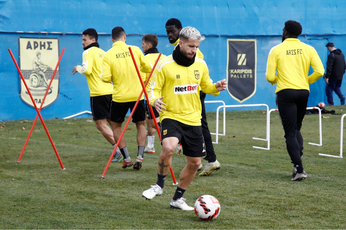 Στιγμιότυπο από προπόνηση του Άρη στο Νέο Ρύσιο