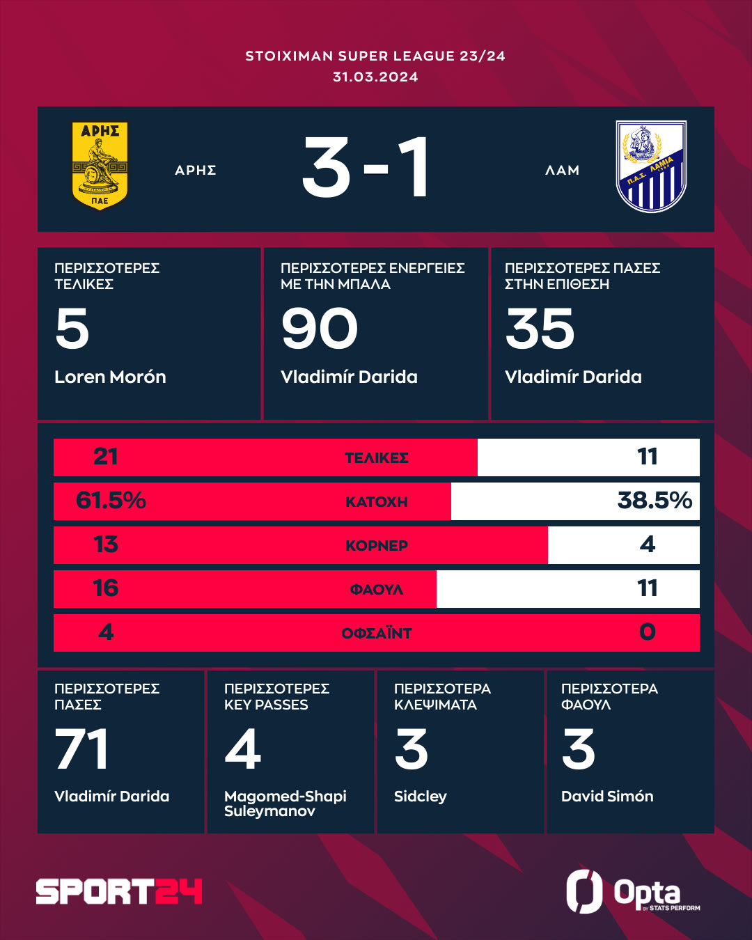 Άρης – Λαμία 3-1: Την καθάρισε σε τέσσερα λεπτά και πήρε ένα ακόμη τρίποντο