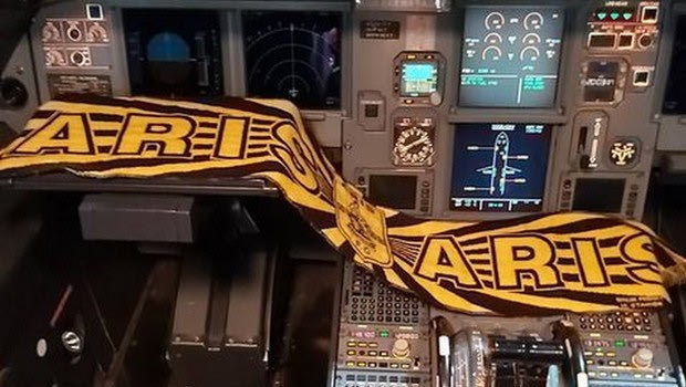 Με πιλότο οπαδό του Άρη επέστρεψε η αποστολή της ομάδας από το Ηράκλειο μετά τη νίκη επί του ΟΦΗ. Μάλιστα είχε μαζί του και κασκόλ, στο οποίο υπέγραψαν οι παίκτες των κίτρινων.