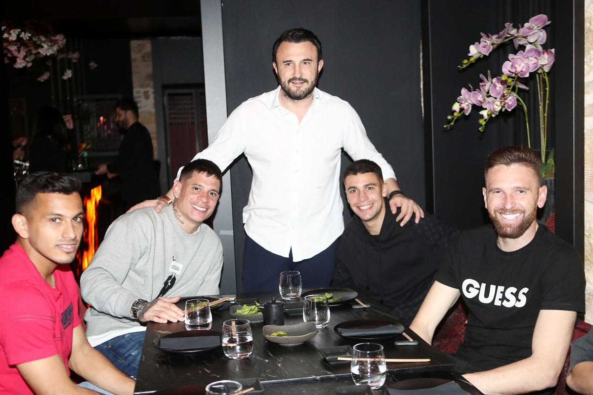 Ο Θεόδωρος Καρυπίδης με παίκτες του Άρη στο γεύμα που παρέθεσε
