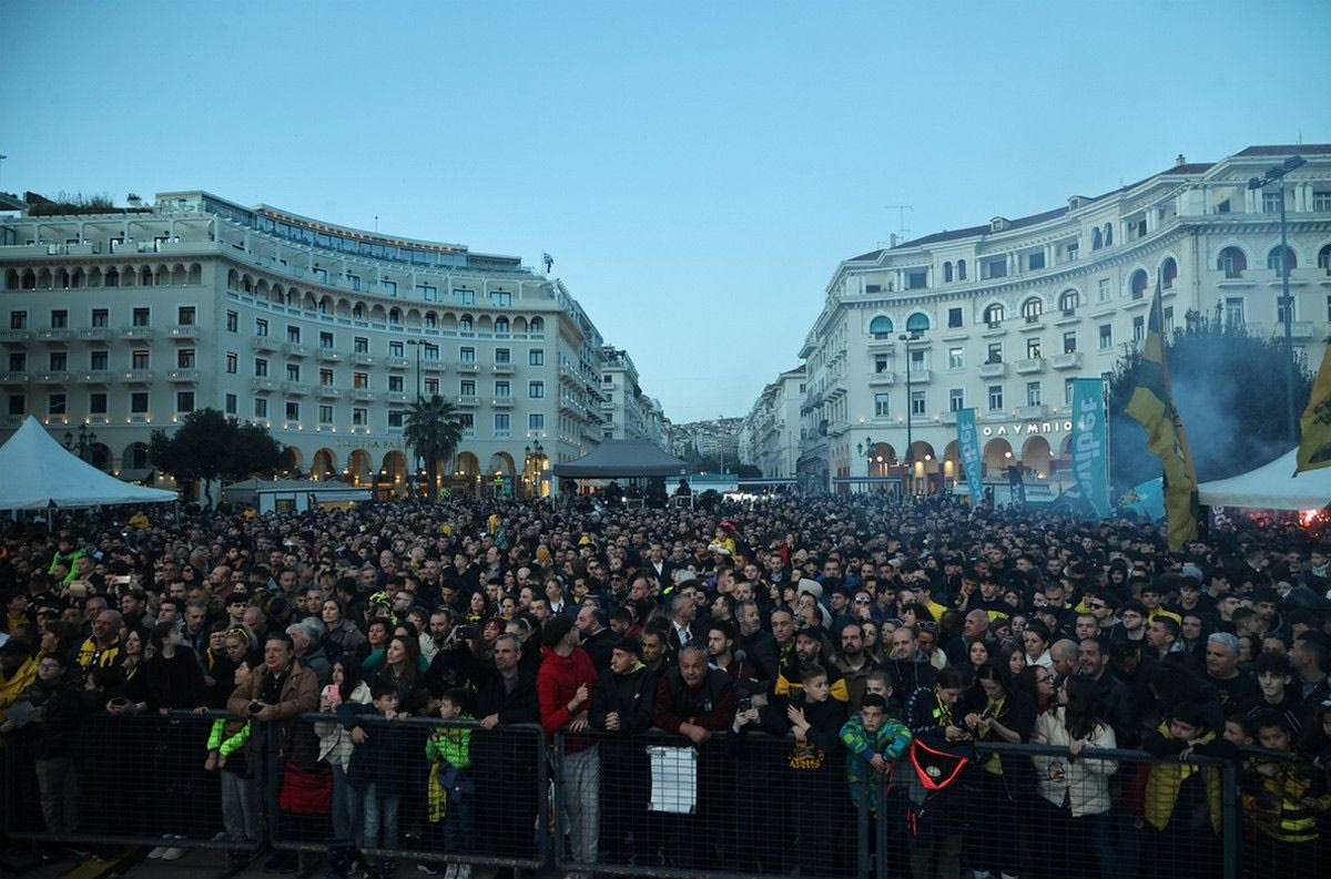 Άρης: Ο κόσμος των κιτρινόμαυρων κατέκλυσε την πλατεία Αριστοτέλους στην επέτειο των 110 χρόνων ιστορίας της ομάδας