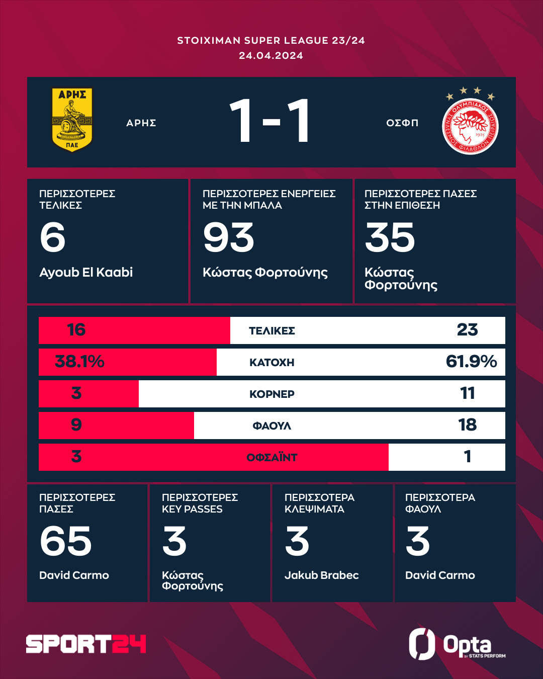 Τα στατιστικά και οι κορυφαίες επιδόσεις στο Άρης - Ολυμπιακός