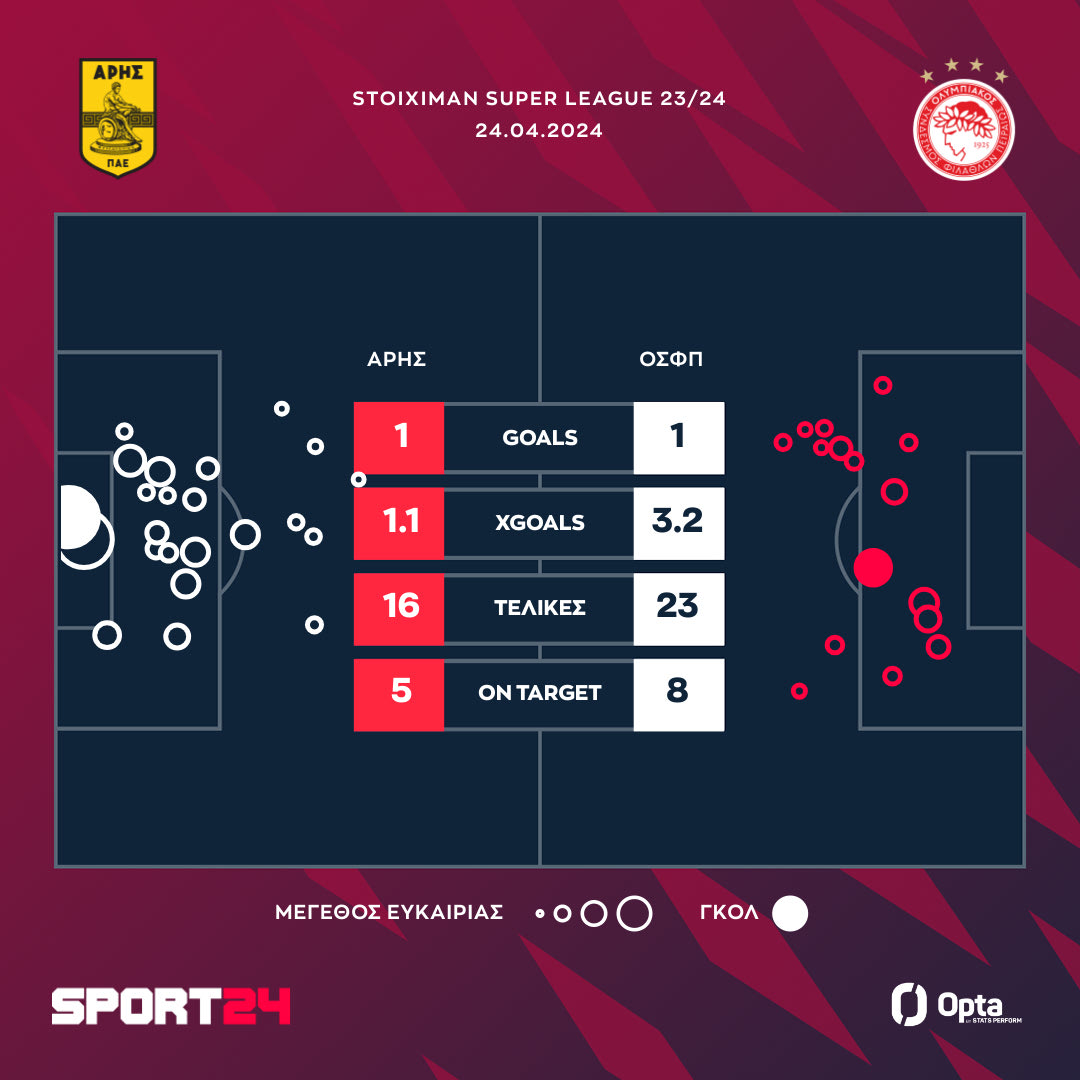 Οι τελικές και τα xGoals στο Άρης - Ολυμπιακός