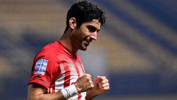 Ο Μπουχαλάκης πανηγυρίζει το 0-2 απέναντι στον Άρη Eurokinissi