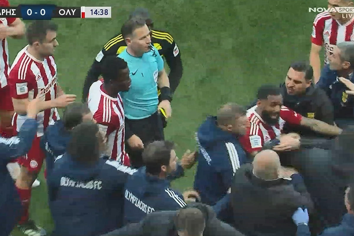 Αιτία μία ένταση που δημιουργήθηκε ανάμεσα στους πάγκους των δύο ομάδων για λίγα δευτερόλεπτα, με τον Αμπουμπακάρ Καμαρά να σπρώχνει τον Θανάση Ανδρούτσο και να ακολουθεί ένταση, για να χρειαστεί να επέμβουν οι πιο ψύχραιμοι και να εκτονωθεί η κατάσταση..