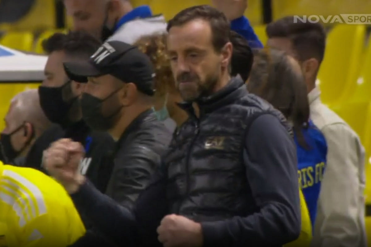 Οι πανηγυρισμοί του Άκη Μάντζιου στην αναμέτρηση του Άρη με τον Παναθηναϊκό