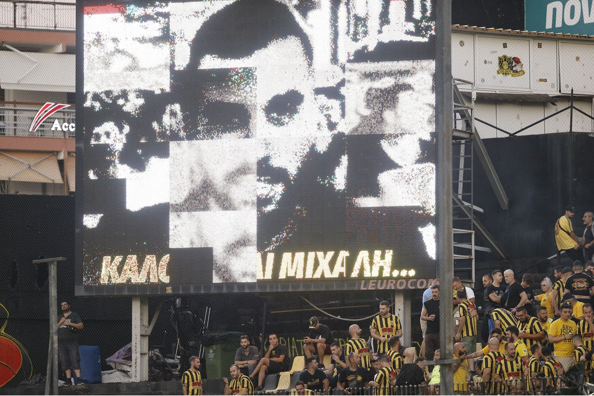 Οι οπαδοί του Άρη τίμησαν τη μνήμη του δολοφονημένου στα επεισόδια της Νέας Φιλαδέλφειας Μιχάλη καθώς ύψωσαν ένα πανό που έγραφε “Μιχάλη καλό ταξίδι” ενώ επίσης και στα μάτριξ υπήρχε η φωτογραφία του οπαδού της ΑΕΚ με το ίδιο μήνυμα.