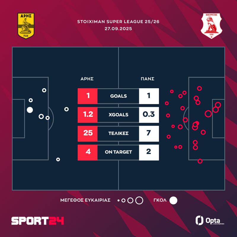 Τέλος μπήκε στο νικηφόρο σερί του Άρη με τον Μανόλο Χιμένεθ στον πάγκο του. Οι κίτρινοι είχαν πολλές ευκαιρίες, όμως έμειναν στο 1-1 με τον Πανσερραϊκό στο “Κλεάνθης Βικελίδης” για την 5η αγωνιστική και έχασαν την ευκαιρία να μείνουν στο -1 από την κορυφή της Stoiximan Super League.