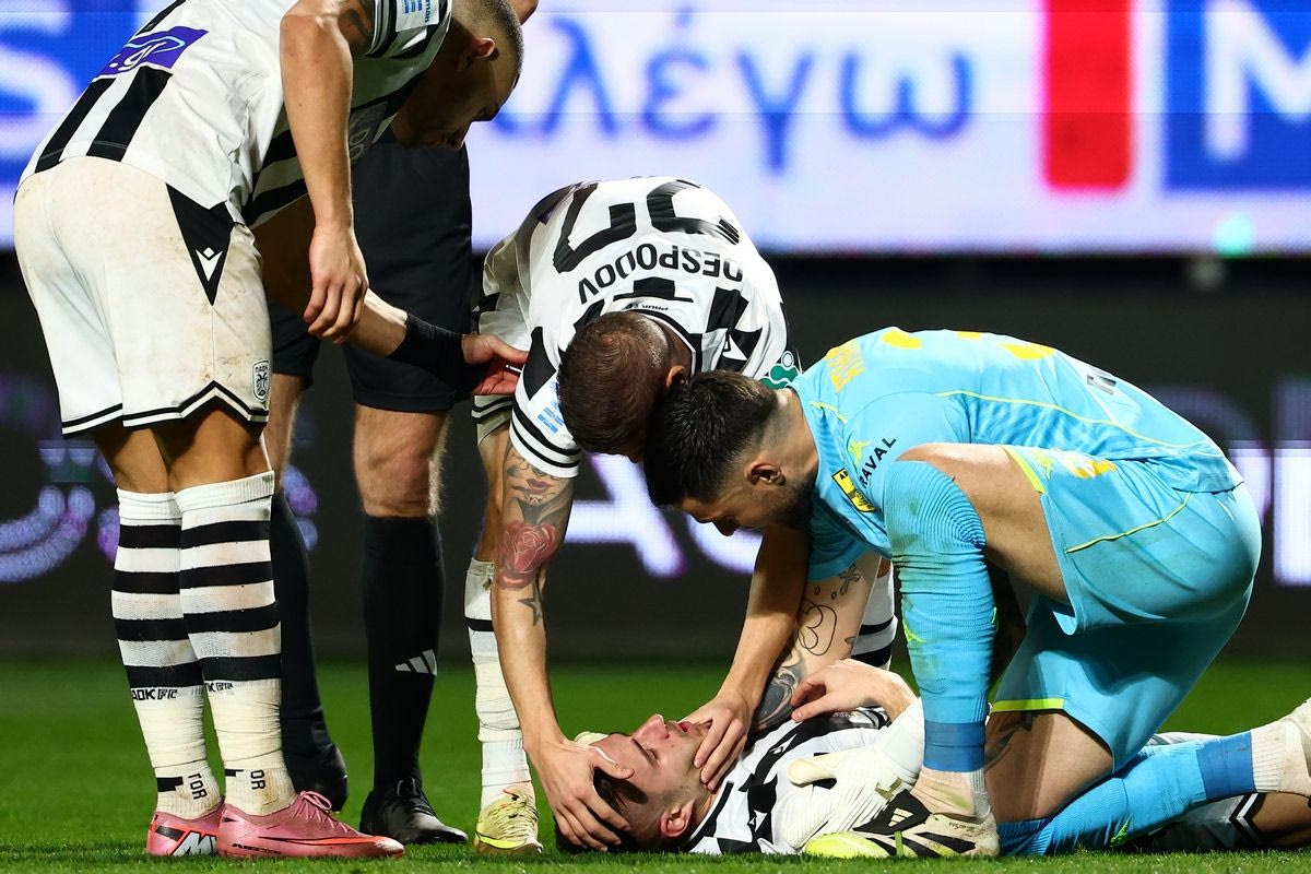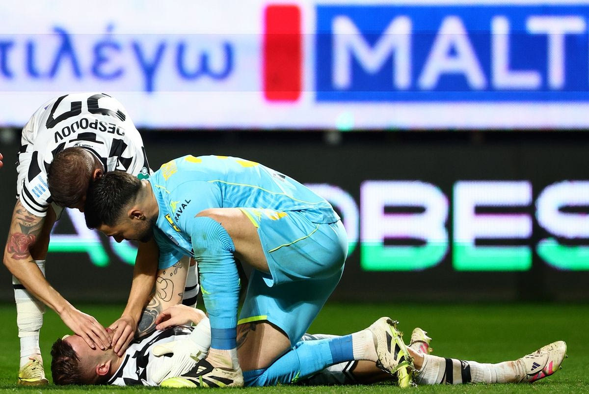 Ο Δημήτρης Πέλκας τραυματίστηκε στο 48′ του ντέρμπι με τον Άρη, καθώς δέχθηκε την μπάλα στο πρόσωπο από μικρή απόσταση και με μεγάλη δύναμη.