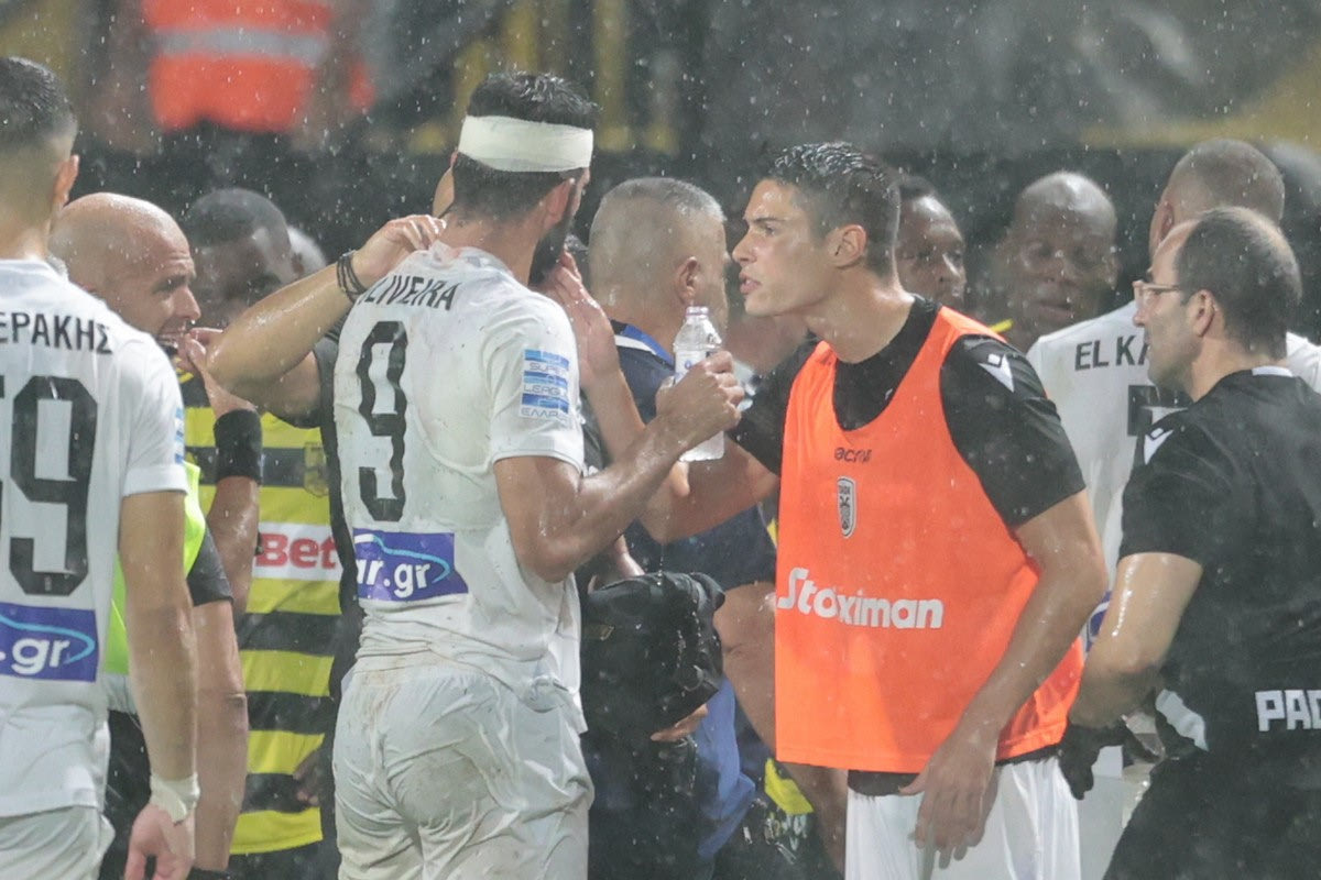 Νωρίτερα ο Ολιβέιρα μάτωσε στο κεφάλι από αγκωνιά του Νταμπό σε διεκδίκηση της μπάλας και του παρασχέθηκαν οι πρώτες βοήθειες.