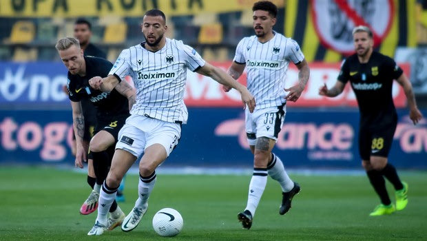 Μάλιστα, λίγο πριν το φινάλε του 45λεπτου, οι ασπρόμαυροι είχαν την καλύτερη ευκαιρία του αγώνα μετά το γκολ τους και θα μπορούσαν κάλλιστα να φτάσουν στην επίτευξη και δεύτερου τέρματος. Ο Σφιντέρσκι έβγαλε ωραία κάθετη πάσα και ο Ελ Καντουρί ξεχήθηκε πρώτος προς τη μπάλα με κατεύθυνση την εστία του Άρη, για να επιχειρήσει λόμπα με το δεξί λίγο έξω από αυτήν και τον Κουέστα να εκτινάσσεται και με τις άκρες των δαχτύλων του να διώχνει με δυσκολία σε κόρνερ.