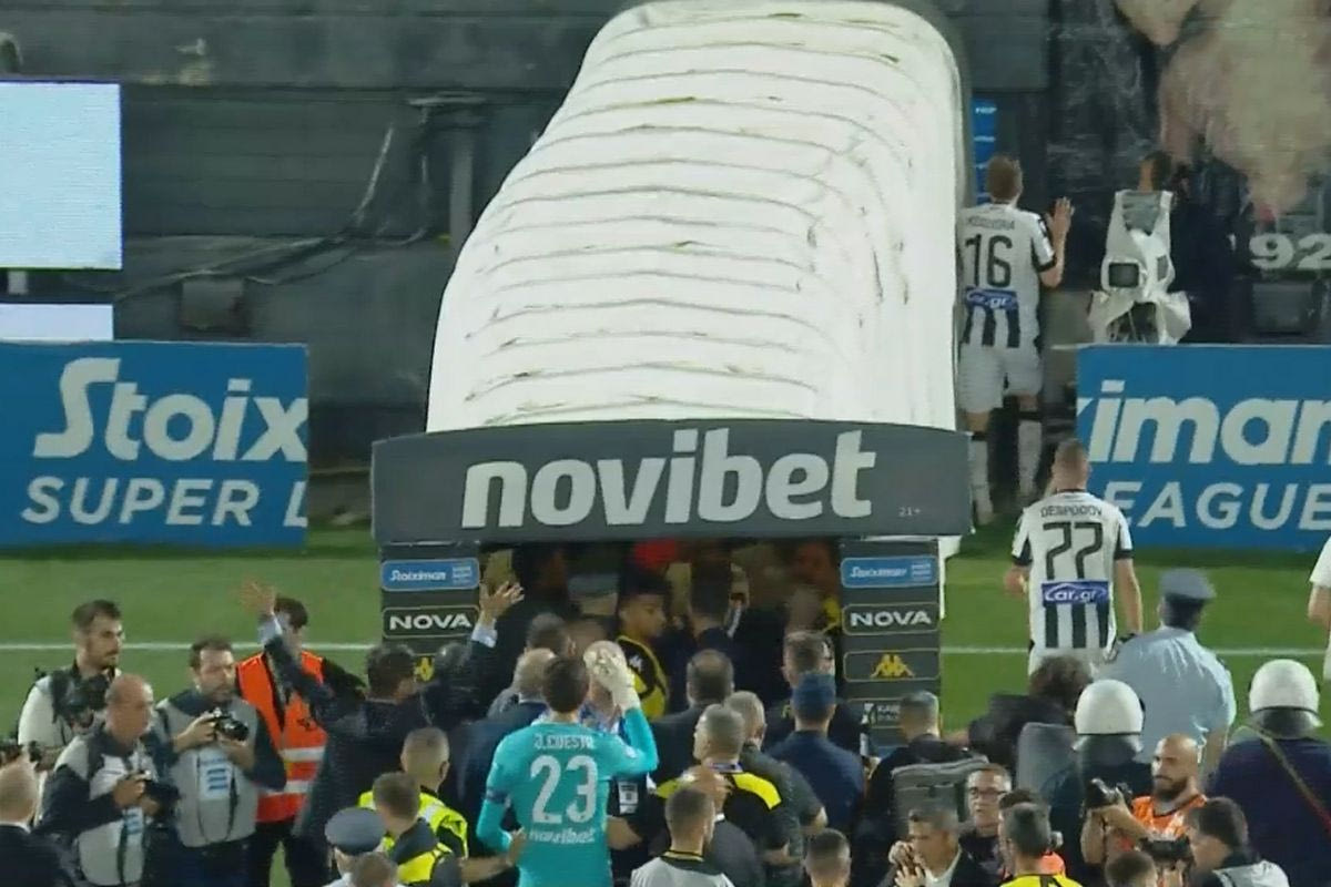 Χαμός επικράτησε για λίγο στο Κλεάνθης Βικελίδης, αφού έπεσε ξύλο την ώρα που οι παίκτες του ΠΑΟΚ πήγαιναν προς τη φισούνα, έχοντας μόλις κατακτήσει το πρωτάθλημα της Stoiximan Super League.