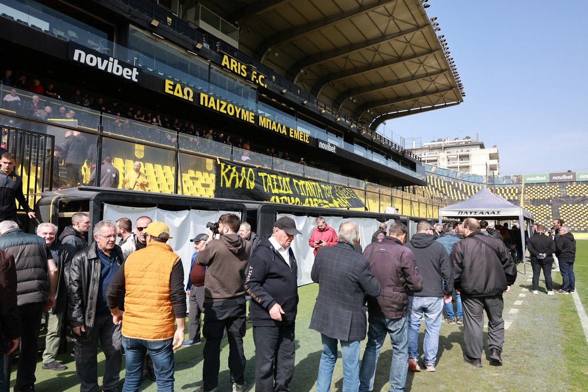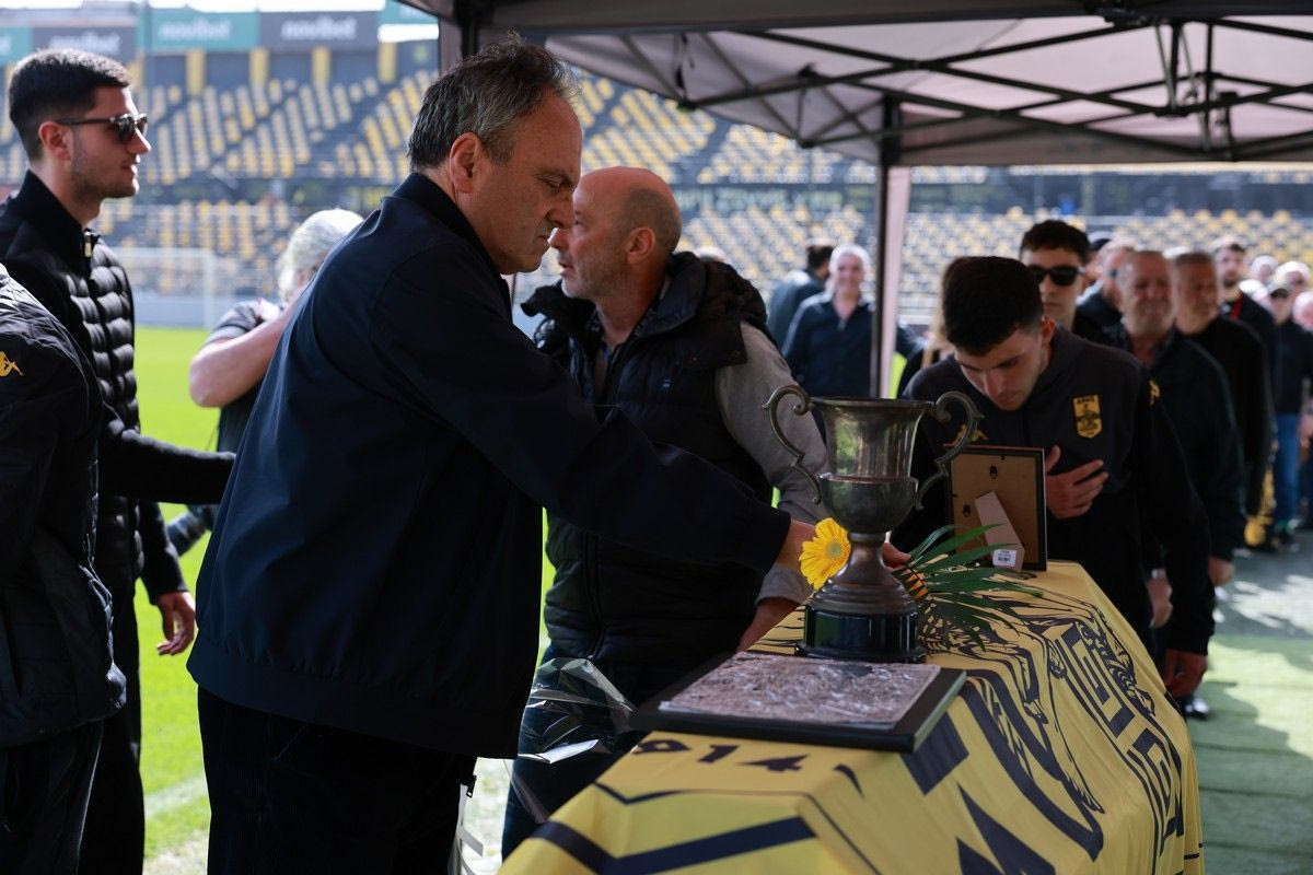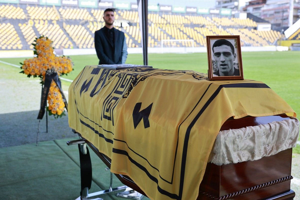 Άρης: Σε λαϊκό προσκύνημα η σορός του Αλέκου Αλεξιάδη, τυλιγμένο με τη σημαία των “κίτρινων” το φέρετρο
