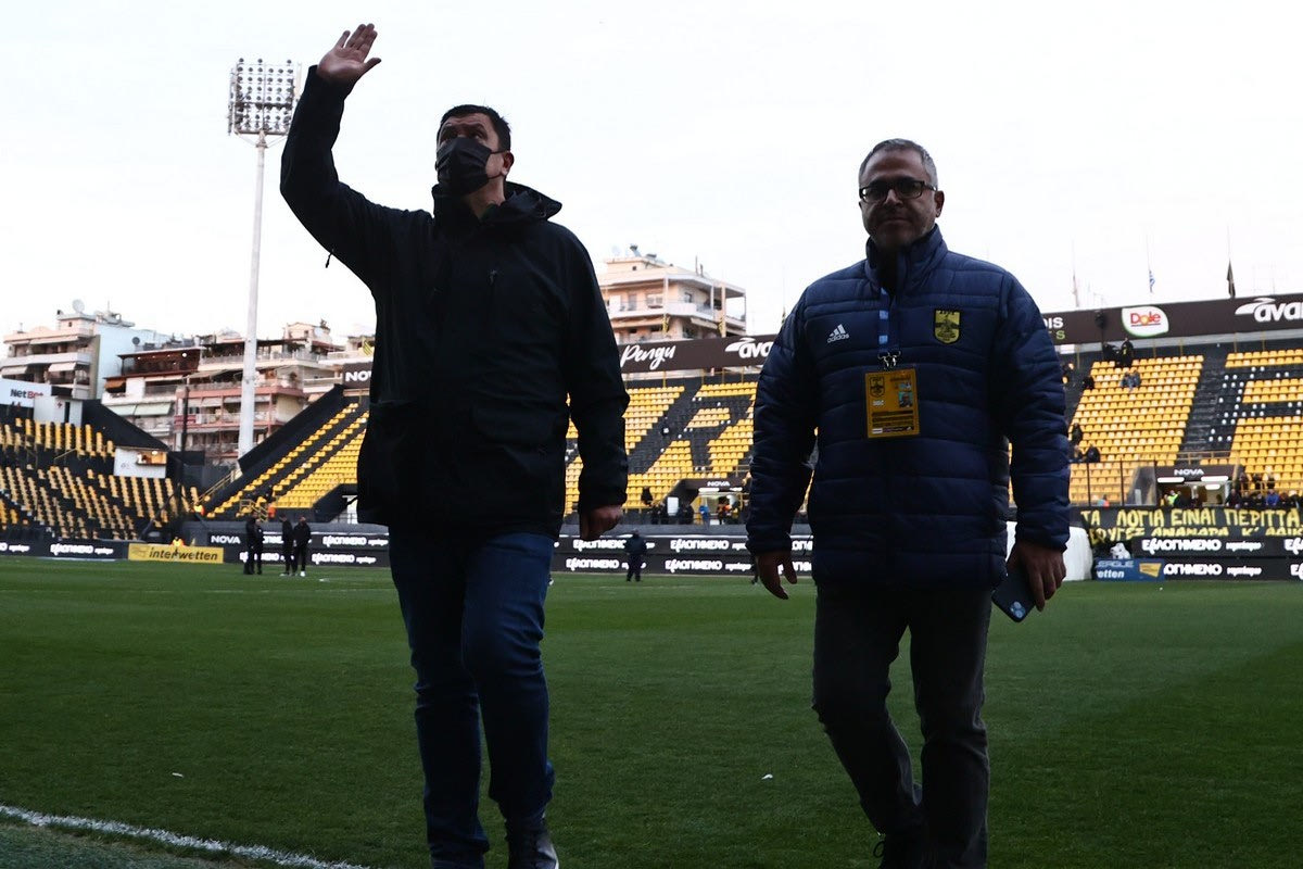 Ο Χερμάν Μπούργος βρέθηκε από νωρίς στο "Κλ. Βικελίδης" για να παρακολουθήσει την αναμέτρηση του Άρη με τον ΠΑΟΚ και γνώρισε την αποθέωση από τον κόσμο των "κιτρίνων".