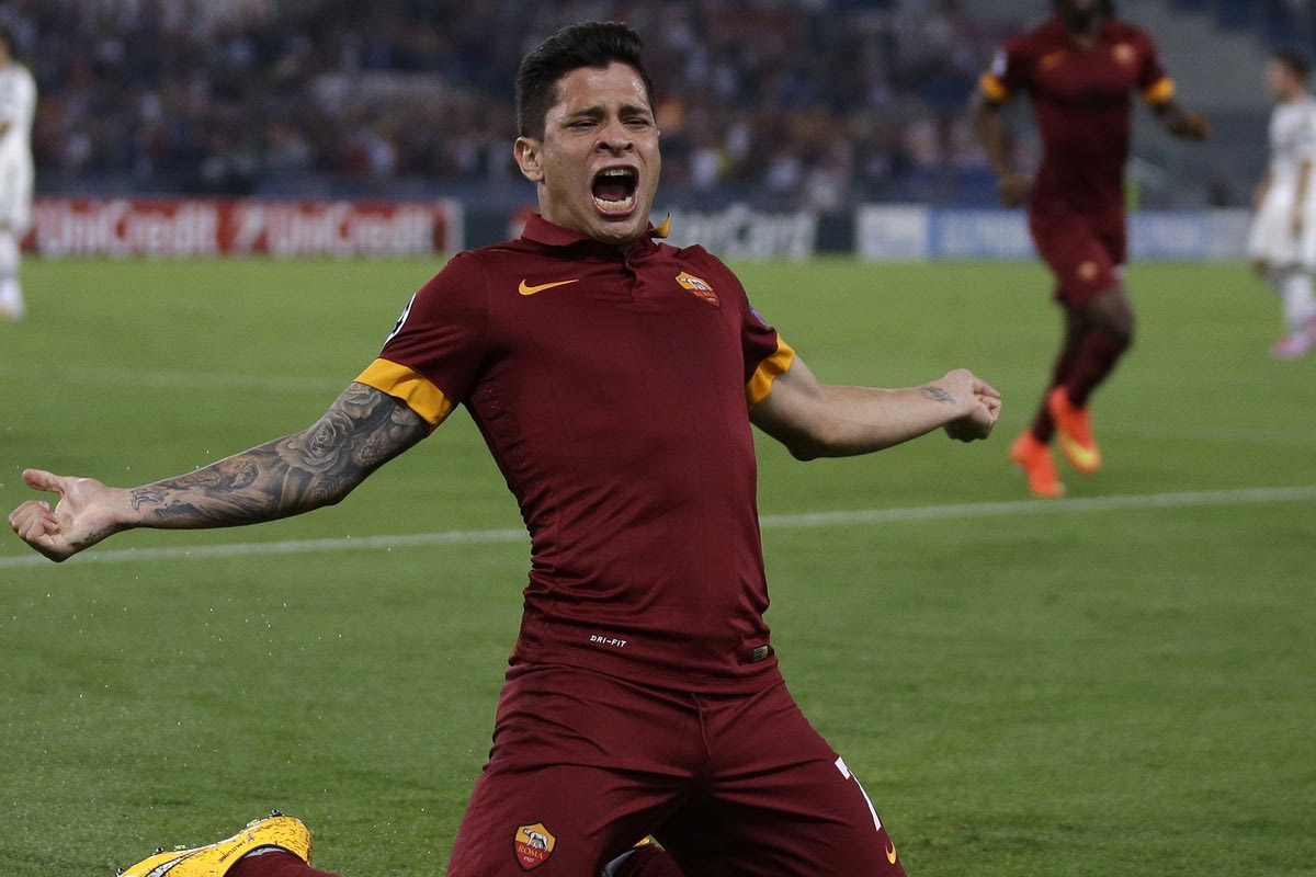 Ο Χουάν Ιτούρμπε πανηγυρίζει γκολ του με τη Ρόμα