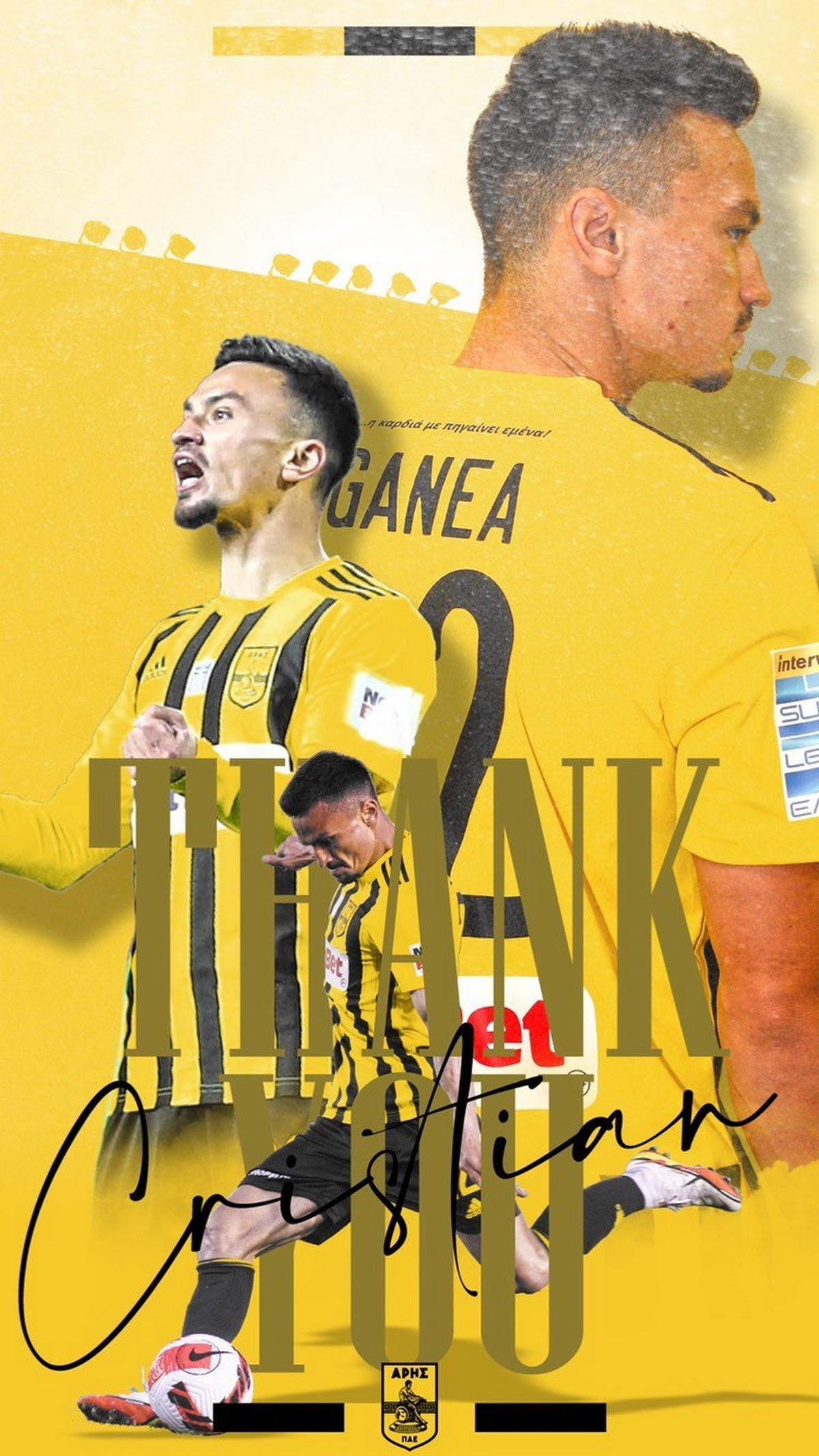 Ο Άρης θέλησε να ευχαριστήσει τον Γκάνεα για την προσφορά του στην ομάδα και ανέβασε εικαστικό σε story στο Instagram. Ο 30χρονος μπακ με τους κίτρινους είχε συνολικά 59 συμμετοχές σε όλες τις διοργανώσεις με ένα γκολ και δύο ασίστ.