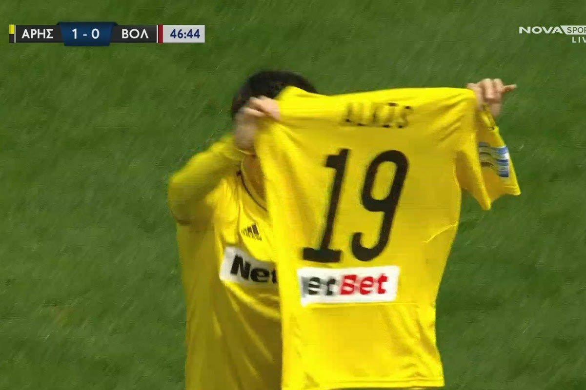 Άρης – Βόλος: Ο Μάνου Γκαρθία πανηγύρισε το γκολ με φανέλα με το όνομα του Άλκη
