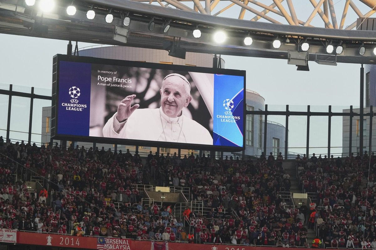 Πριν τη σέντρα στον ημιτελικό του UEFA Champions League, οι παίκτες των Άρσεναλ και Παρί Σεν Ζερμέν τήρησαν ενός λεπτού σιγή στη μνήμη του Πάπα Φραγκίσκου.