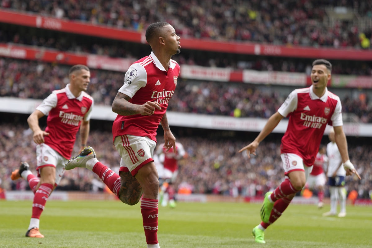 Ο Γκαμπριέλ Ζεζούς πανηγυρίζει με τους συμπαίκτες του το γκολ στο Άρσεναλ - Τότεναμ © 2022 Kirsty Wigglesworth / AP IMAGES