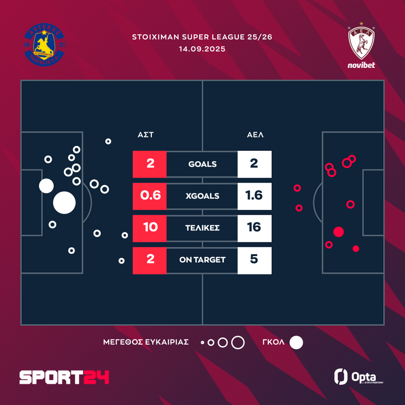 Ο Πασάς όμως δεν έμεινε εκεί, αφού βρήκε δίχτυα με πέναλτι στο 90’+3′ και χάρισε τον βαθμό στην ΑΕΛ Novibet.