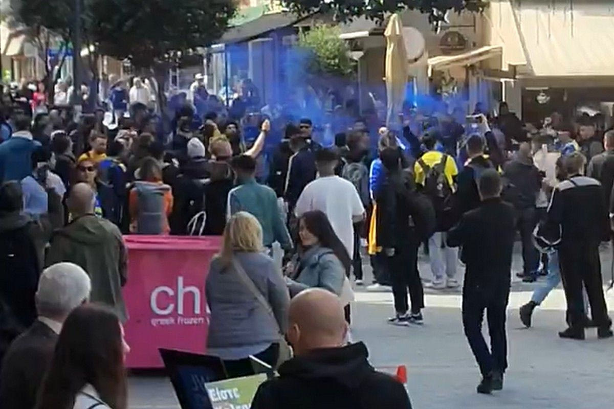 Οι φίλοι του Αστέρα AKTOR έδωσαν κιτρινομπλέ χρώμα στην πόλη του Ηρακλείου λίγες ώρες πριν από τον δεύτερο ημιτελικό Κυπέλλου με τον ΟΦΗ, με τον αντιπρόεδρο της ομάδας, Δημήτρη Μποροβήλο, να πιάνει το τύμπανο για να δώσει ρυθμό στα συνθήματα και να γνωρίζει την αποθέωση.