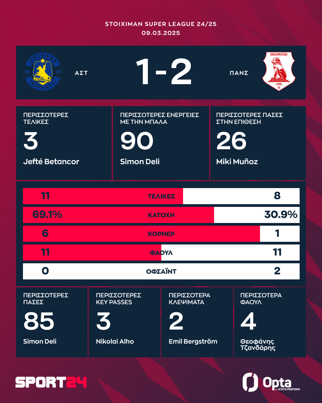 Ο Αστέρας Τρίπολης AKTOR μπορεί να ήταν μπροστά στο σκορ μέχρι το 60ο λεπτό του αγώνα με γκολ του Μουνιόθ, όμως ο Πανσερραϊκός κατάφερε να γυρίσει το παιχνίδι και να πάρει μεγάλη βαθμολογική ανάσα ενόψει των playouts.