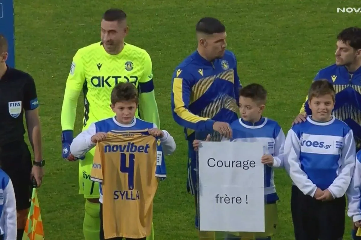 Οι συμπαίκτες του 31χρονου ακραίου αμυντικού δεν τον ξέχασαν και έστειλαν το μήνυμά τους. Ο κάπτεν, Νίκος Παπαδόπουλος, κρατούσε μια φανέλα του, ενώ ο Κώστας Τριανταφυλλόπουλος κράτησε ένα πλακάτ που έγραφε στα γαλλικά. “Κουράγιο αδερφέ”. Μάλιστα στην αναμνηστική φωτογραφία των παικτών του Κόουλμαν, ποζάραν με το μήνυμα στον Σιλά.