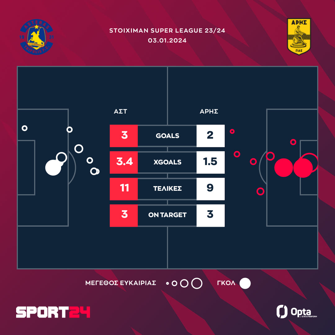 Αστέρας – Άρης 3-2: Οι Αρκάδες με ασύλληπτη ανατροπή εδραιώνονται στην εξάδα