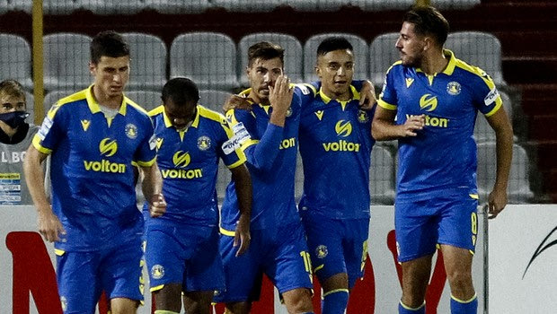 Οι παίκτες του Αστέρα πανηγυρίζουν γκολ απέναντι στην ΑΕΛ Eurokinissi Sports