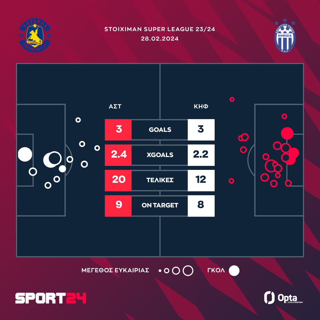 Τα xgoals και οι τελικές προσπάθειες στην αναμέτρηση του Αστέρα με την Κηφισιά